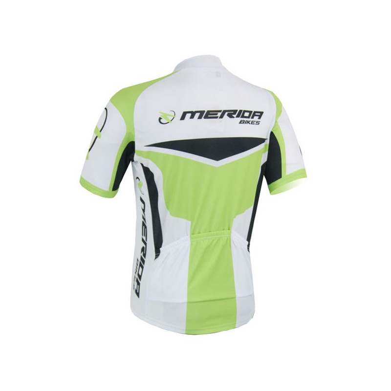 Koszulka posiada praktyczne kieszenie tylne, w których zmieścisz bidon, żele lub drobne akcesoria. Elastyczne wykończenia rękawów i dołu utrzymują koszulkę stabilnie na miejscu nawet podczas intensywnego treningu. Dynamiczne wzornictwo oraz logotypy MERIDA podkreślają profesjonalny charakter odzieży.